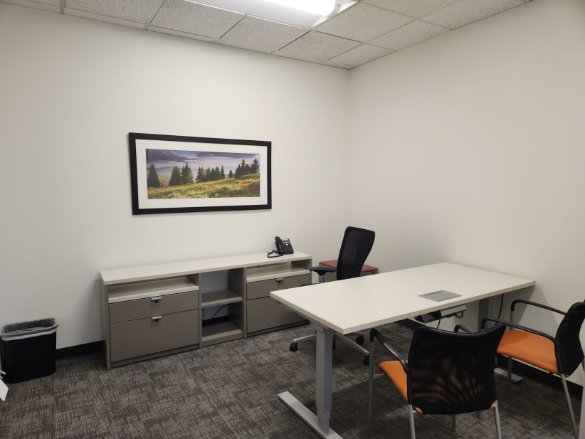 • A fully furnished private office (desk, chair, and seating for guests)